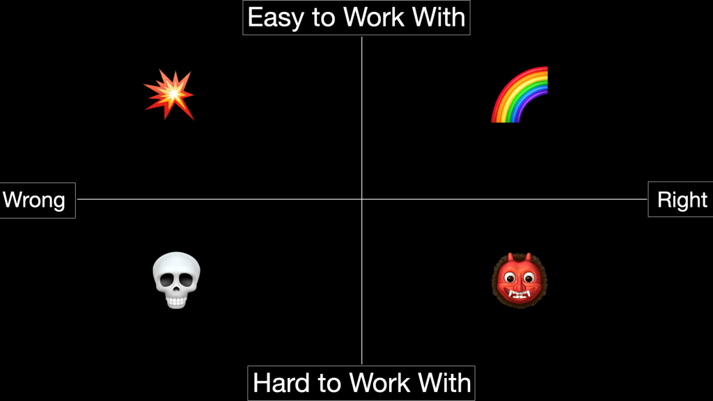 - Not like Right and Difficult has it much easier. Sure, the team agrees that the leader is heading the right direction, but every day is a struggle. Since it’s already a struggle to do things that are worth doing, struggling over mundane tasks like shared situational awareness is kind of a waste. The Right and Difficult leader may have the charisma to inspire followers to put up with their difficult behaviors (insert your favorite exemplar here), but it’s still an unnecessary own-goal. Unless an unhealthy team dynamic is the goal of course.